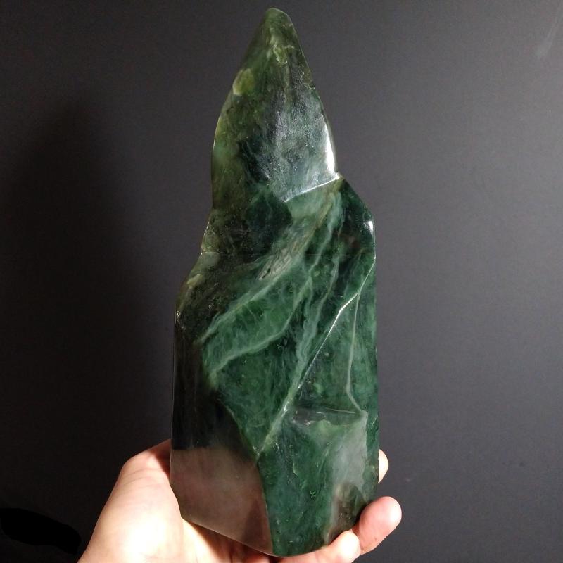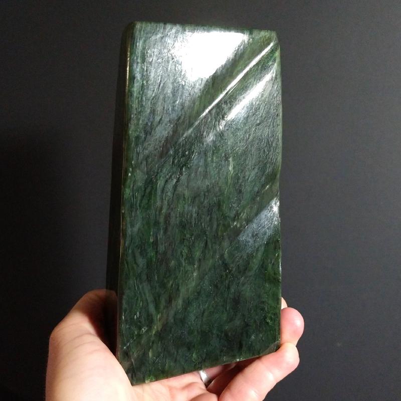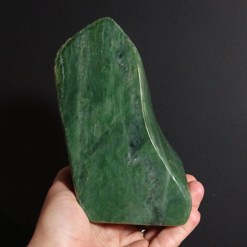 Nephrite Jade, free-form cut and polished. 8.7 inches long, 3.28 pounds in weight. This is a one-of-a kind item - you will receive the actual item in photo - once sold, it is gone.