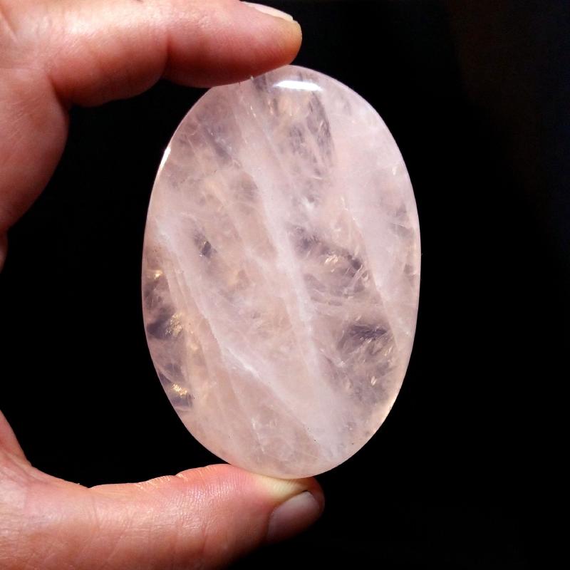 Rose Quartz Palm Stone, approximately 2.8 inches long. Each one unique. Sold by the each.