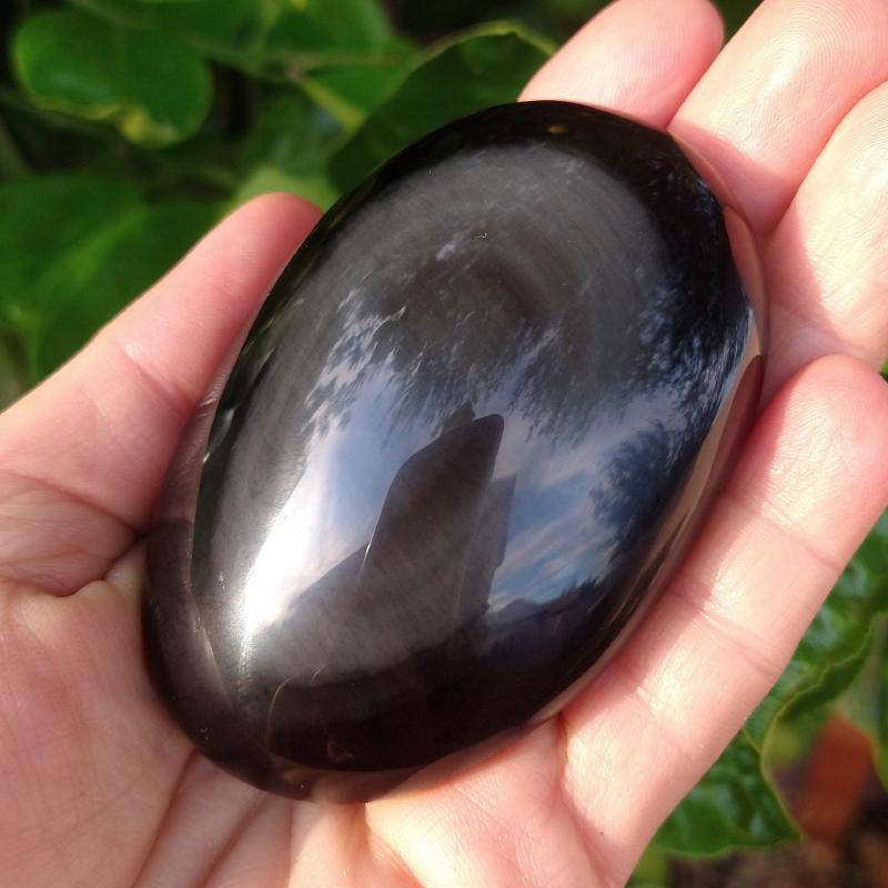 Large Sheen Obsidian Palm Stone. 3.1 inches long, 0.31 pound in weight.This is a one-of-a-kind item - you will receive the actual item in photo. Once sold, it is gone.
