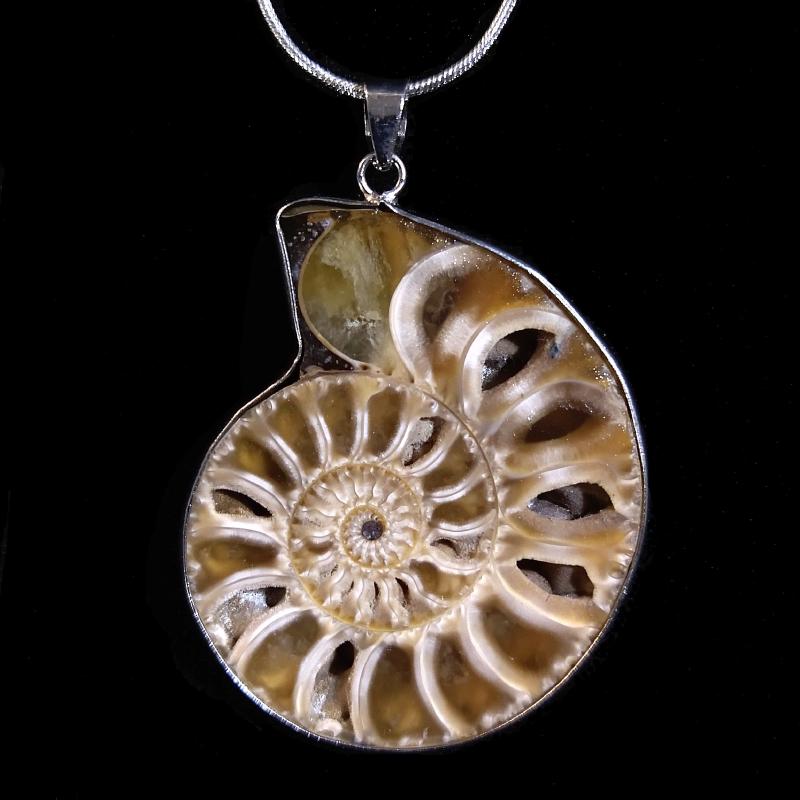 Ammonite Pendant, silver plate, approximately 1.75-2 inches long including bail.18 inch silver plate courtesy chain included. Each one unique.