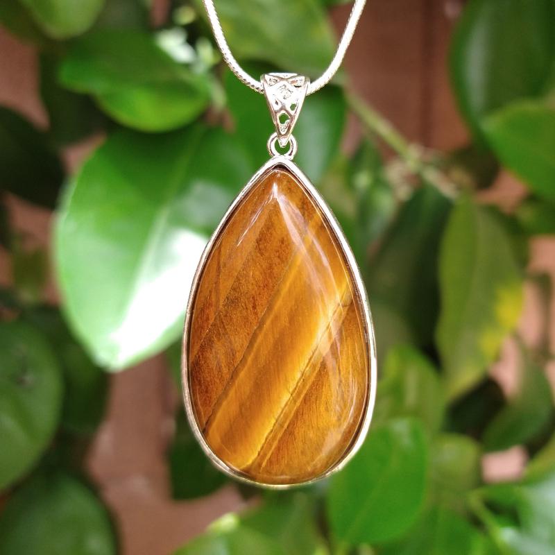 Tiger Eye Pendant, 2 inches long including bail. 18 inch silver plate courtesy chain included.