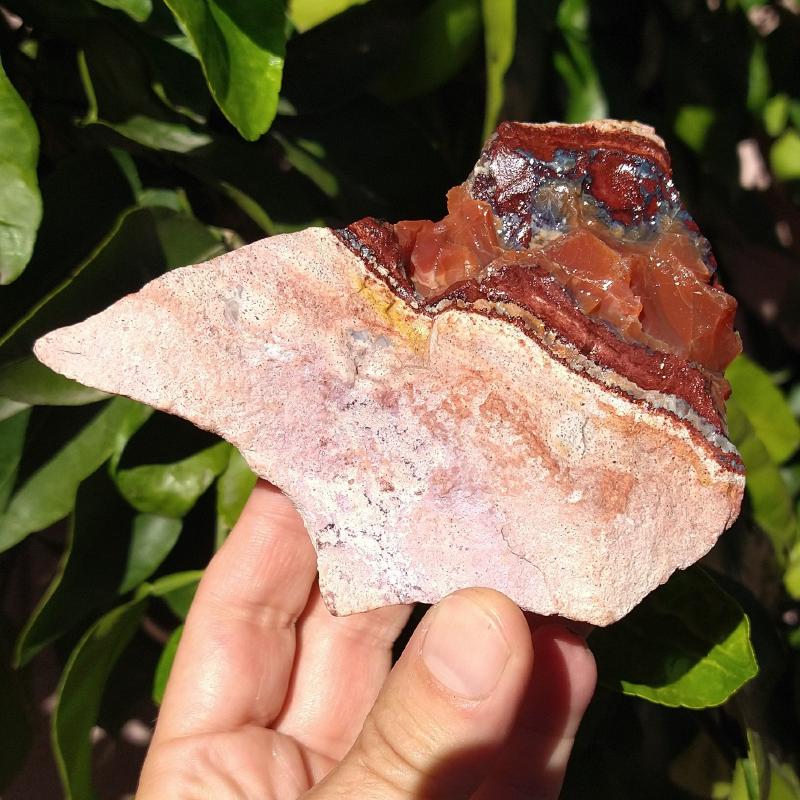 Flower Agate slab, with druzy cavity. 2.35 inches long, 0.15 pound in weight. This is a one-of-a kind item - you will receive the actual item in photo - once sold, it is gone.