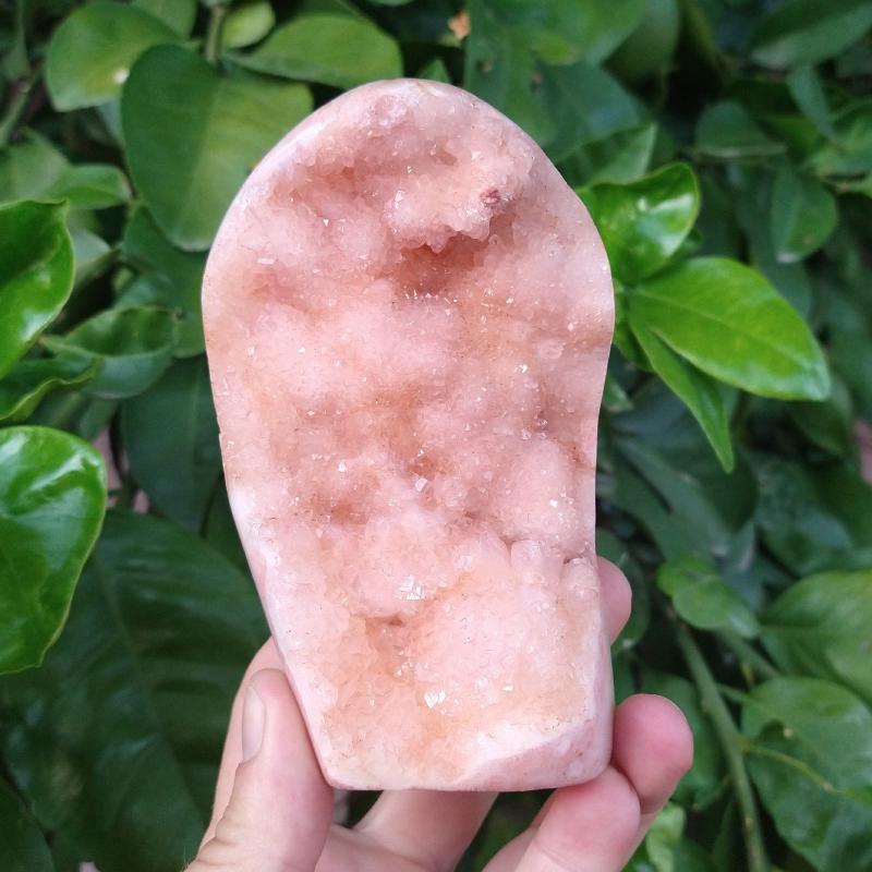 Rose Amethyst slab with natural edge, from Brazil. 9.85 inches long, 3.20 pounds in weight. This is a one-of-a kind item - you will receive the actual item in photo - once sold, it is gone.