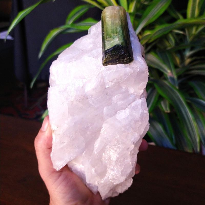 Pink Tourmaline in white Quartz. 2.75 inches long, 0.45 pound in weight. This is a one-of-a-kind item - you will receive the actual item in photo. Once sold, it is gone.