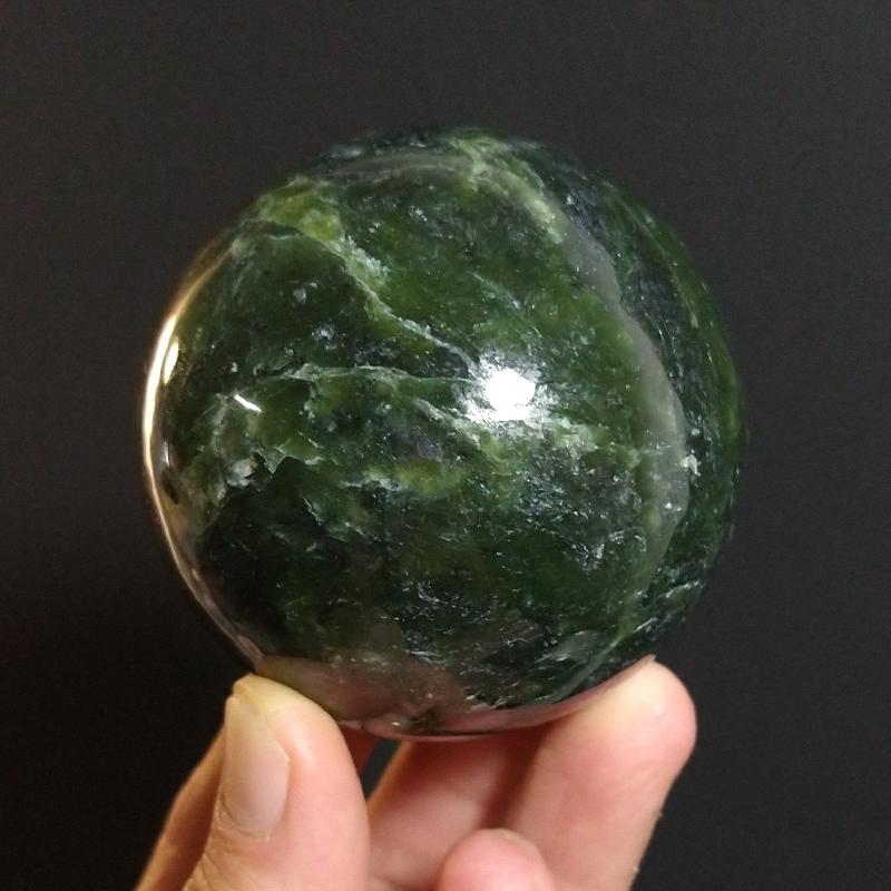 Nephrite Jade Sphere, 2.5 inches in diameter, 0.86 pound in weight. This is a one-of-a kind item - you will receive the actual item in photo - once sold, it is gone.