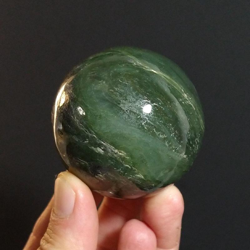 Nephrite Jade Sphere, 2 inches in diameter, 0.46 pound in weight. This is a one-of-a kind item - you will receive the actual item in photo - once sold, it is gone.