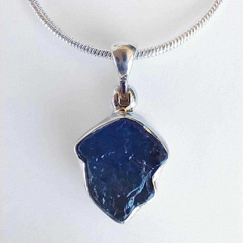 Tanzanite Pendant, set in sterling silver. 1 inch long, including bail.18 inch silver plate courtesy chain included.This is a one-of-a-kind item - you will receive the actual item in photo. Once sold, it is gone.