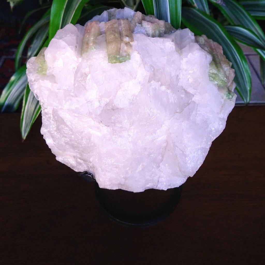 Tourmaline in White Quartz. Iron stand included. 8.25 inches wide, 9.06 pounds total weight including stand. This is a one-of-a-kind item - you will receive the actual item in photo. Once sold, it is gone.