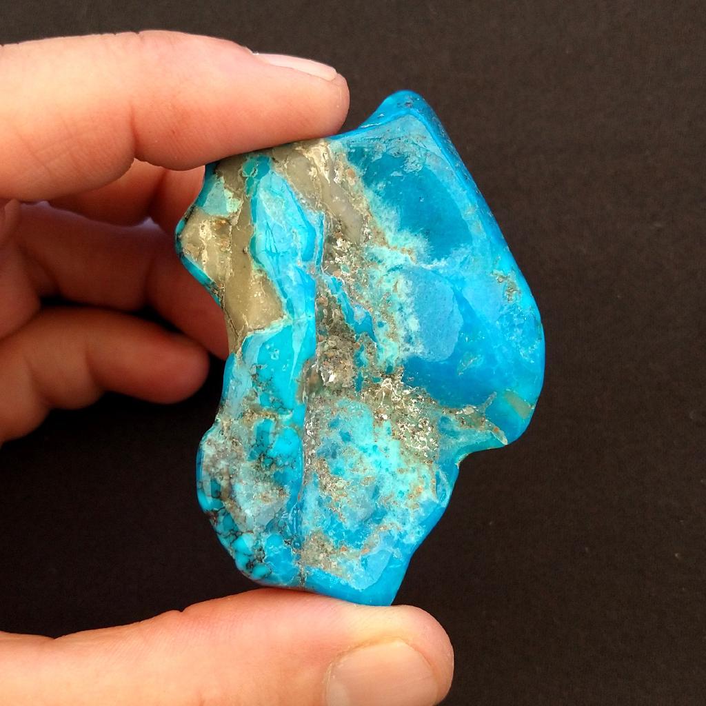 Polished Turquoise from Kingman, Arizona. 2.3 inches long, 22.9 grams in weight.This is a one-of-a-kind item - you will receive the actual item in photo. Once sold, it is gone.