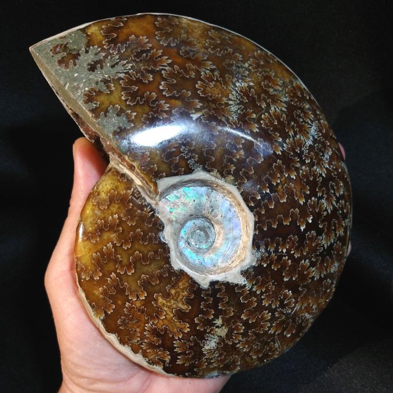 Septarians formed between 50 to 70 million years ago. As a result of volcanic eruptions, dead sea life was chemically attracted to the sediment around them, forming mud balls. As the ocean receded, the balls dried and cracked. Due to their bentonite content they also shrank in size, creating the cracks inside. As decomposed shells seeped down into the cracks in the mud balls, calcite crystals formed. The outer thin walls of calcite then transformed into aragonite. The name Septarian comes from the Latin word “septem”, meaning seven, because the mud balls had a tendency to crack in 7 points in every direction, thereby creating the distinctive pattern these nodules exhibit.