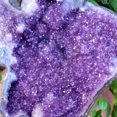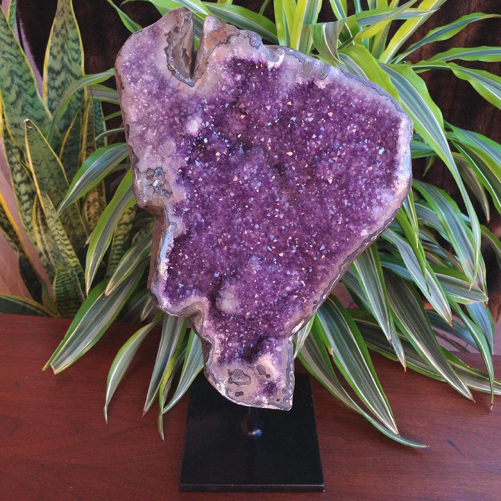 Amethyst on stand from Uruguay. Specimen is 13 inches long, 17.75 inches tall including stand. 21.80 total pounds in weight. See additional enlargements.This is a one-of-a kind item - you will receive the actual item in photo - once sold, it is gone.