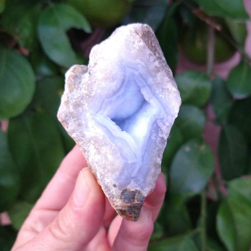Blue Chalcedony, from Malawi. 2.5 inches long, 0.30 pound in weight.This is a one-of-a kind item - you will receive the actual item in photo - once sold, it is gone.