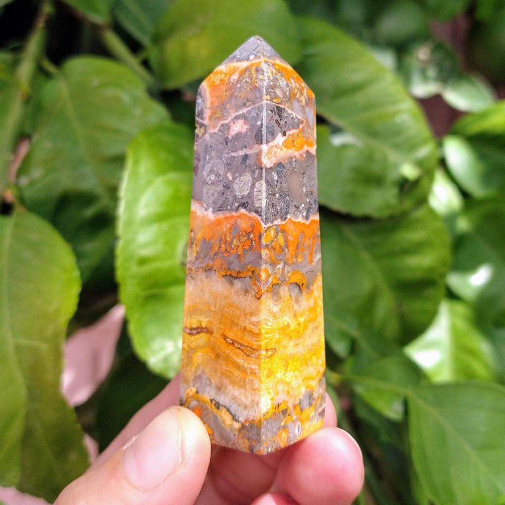 Bumblebee Jasper, cut & polished, 3 inches long. This is a one-of-a-kind item - you will receive the actual item in photo. Once sold, it is gone.