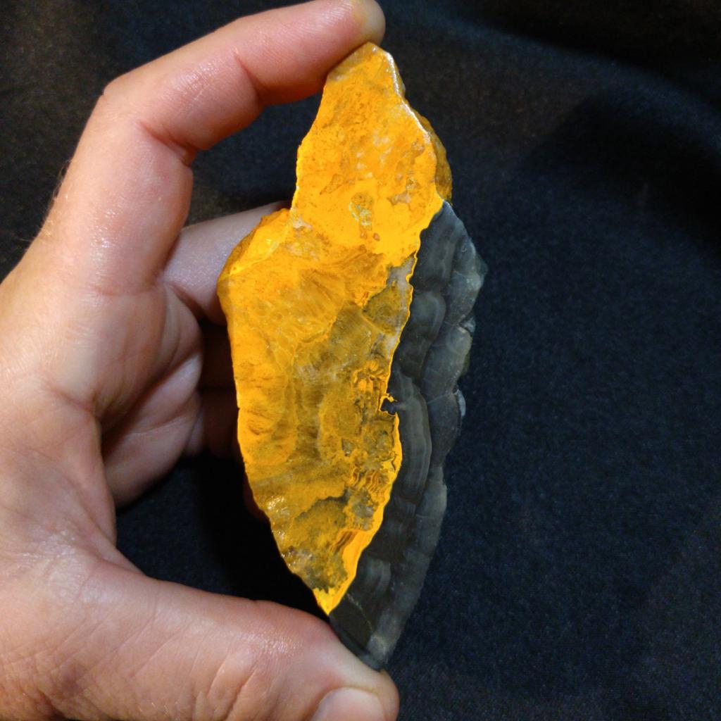 Bumblebee Jasper slab, 4 inches long. This is a one-of-a-kind item - you will receive the actual item in photo. Once sold, it is gone.
