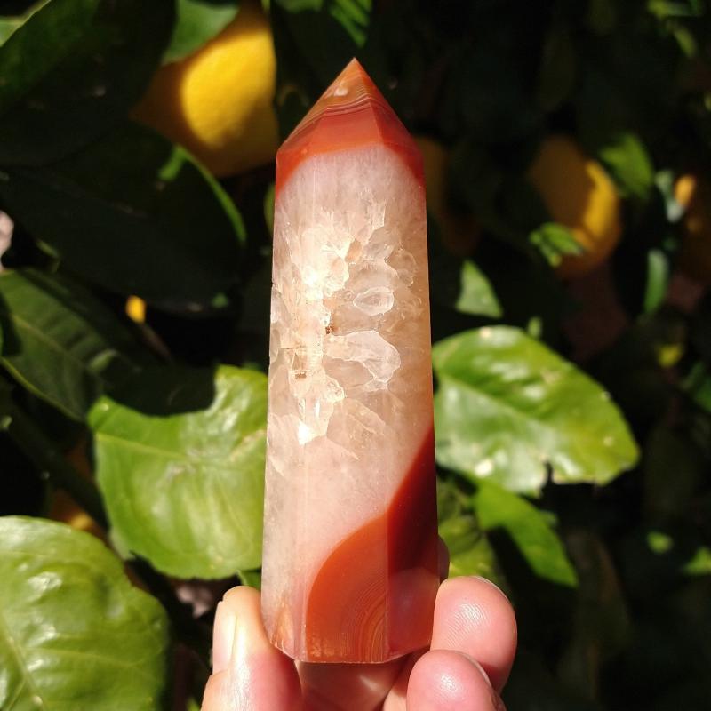 Carnelian (also spelled cornelian) is a brownish-red mineral semi-precious gemstone. Carnelian is a silica mineral chalcedony colored by impurities of iron oxide. The color can vary greatly, ranging from pale orange to an intense almost-black coloration.