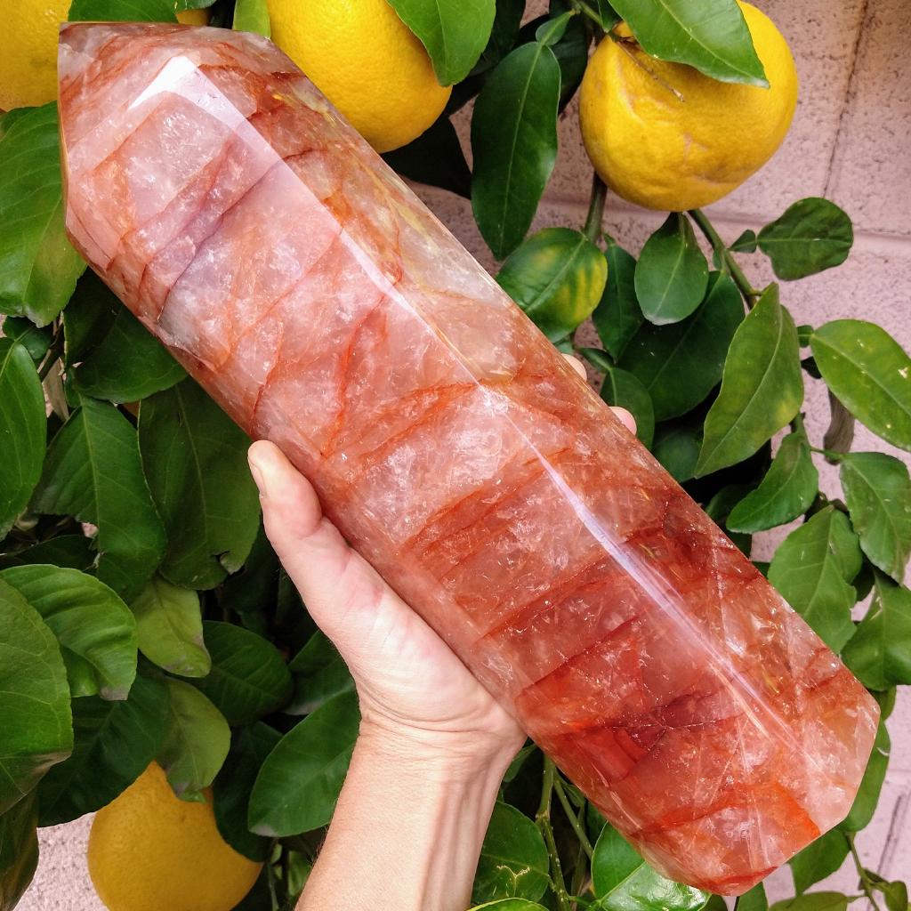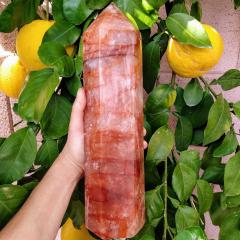 Large Fire Quartz Tower (hematoid quartz), cut & polished. 13 inches long, 8.18 pounds in weight.This is a one-of-a-kind item. You will receive the actual item in photo. Once sold, it is gone.