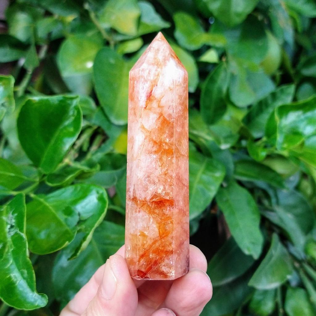 Small Fire Quartz cut & polished tower (hematoid quartz). 3.5 inches long. This is a one-of-a-kind item. You will receive the actual item in photo. Once sold, it is gone.