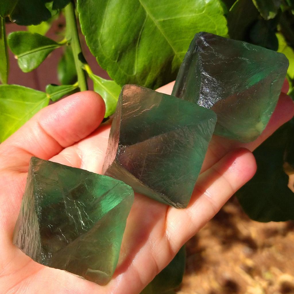 Fluorite Octahedrons - these are natural crystals, not cut. Approximately 2.25 inches long. Each one unique. Sold by the each.