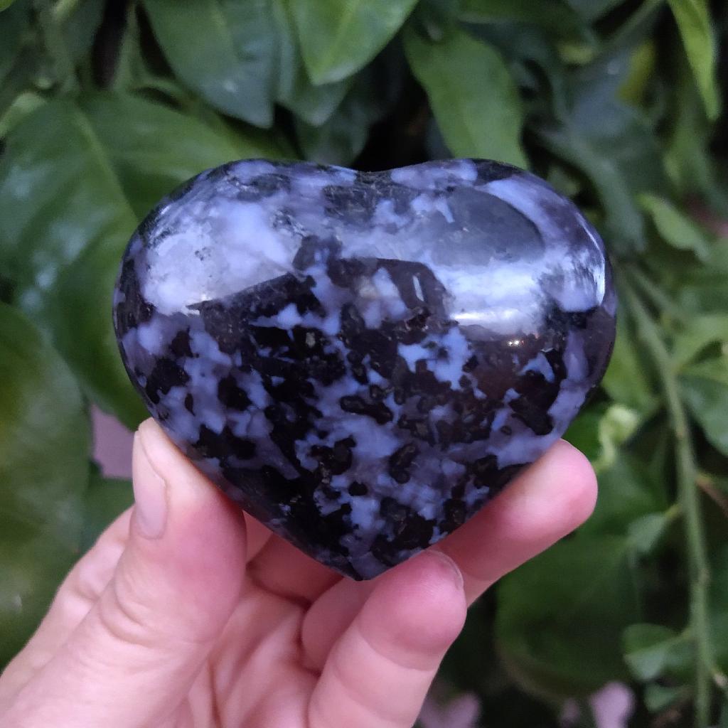 Indigo Gabbro Heart# IG-7Indigo Gabbro Heart, approximately 2.75 inches wide, 0.42 pound in weight.$18.00