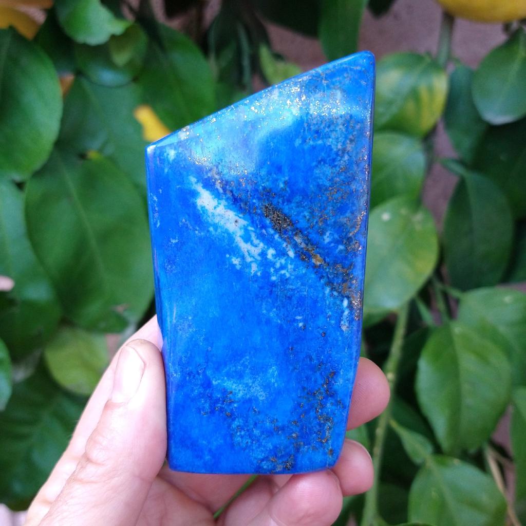Cut and polished free-form Lapis Lazuli. 3.6 inches long, 0.43 pound in weight.This is a one-of-a-kind item - you will receive the actual item in photo. Once sold, it is gone.