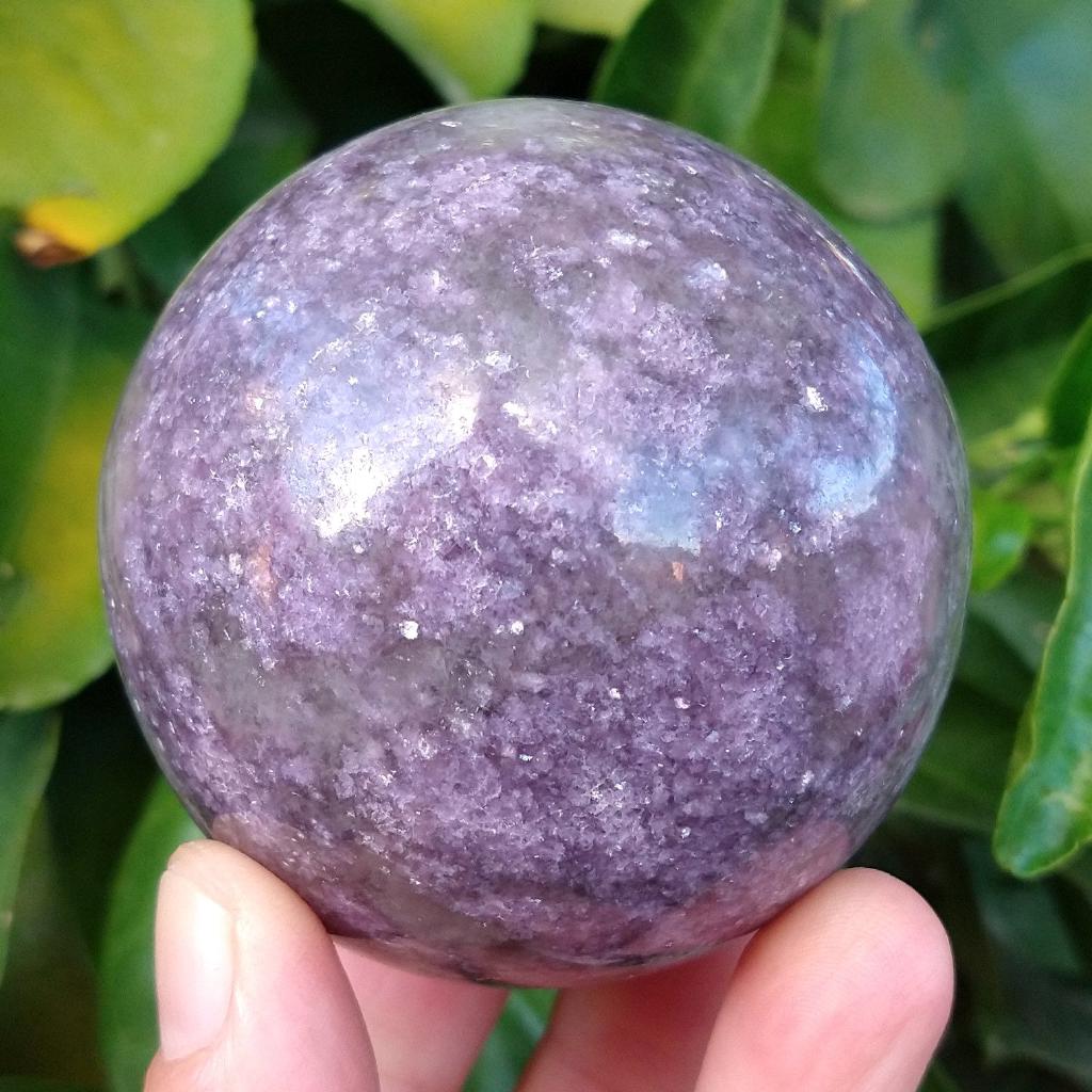 Lepidolite Sphere. 2.5 inches in diameter, 0.82 pound in weight. This is a one-of-a-kind item - you will receive the actual item in photo. Once sold, it is gone.