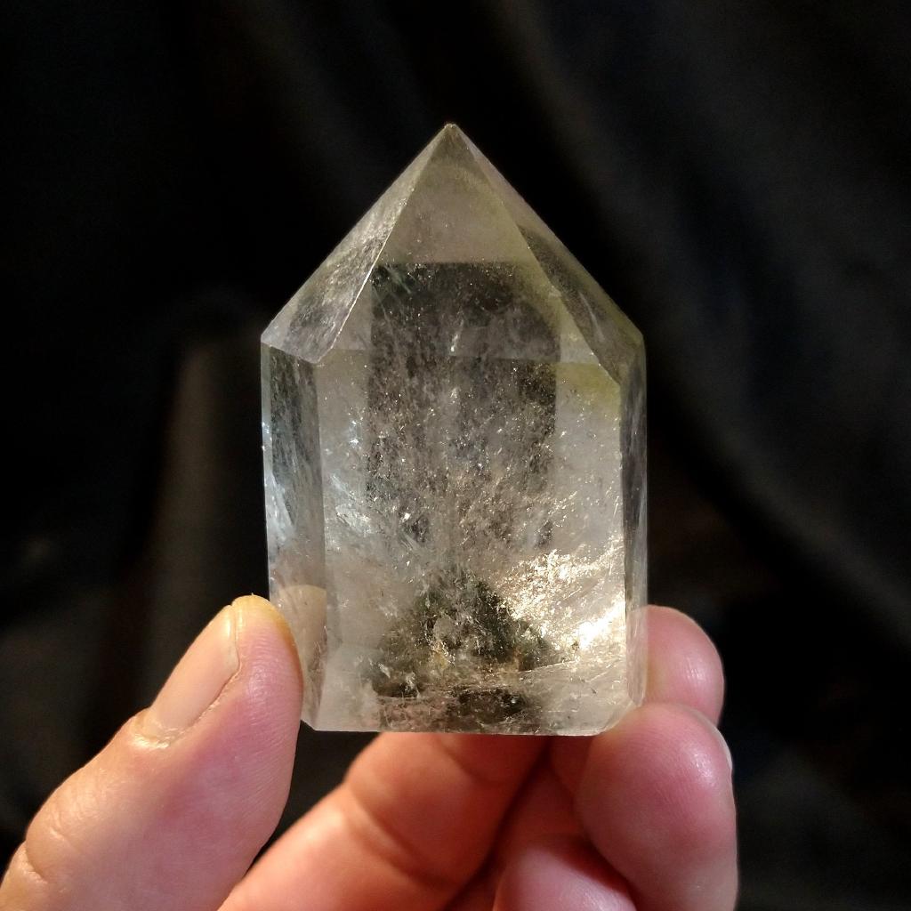 Phantom Lodolite Quartz. Cut & polished, 2.1 inches long, 0.18 pound in weight.This is a one-of-a kind item - you will receive the actual item in photo - once sold, it is gone.