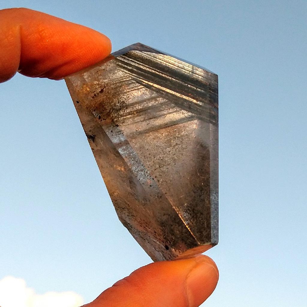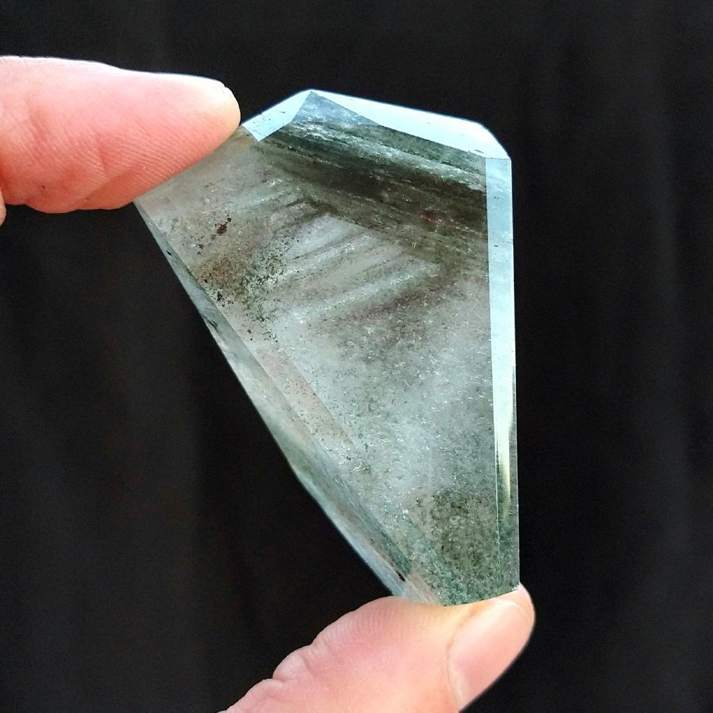 Phantom Lodolite Quartz. Cut & polished, 2.1 inches long, 0.13 pound in weight.This is a one-of-a kind item - you will receive the actual item in photo - once sold, it is gone.