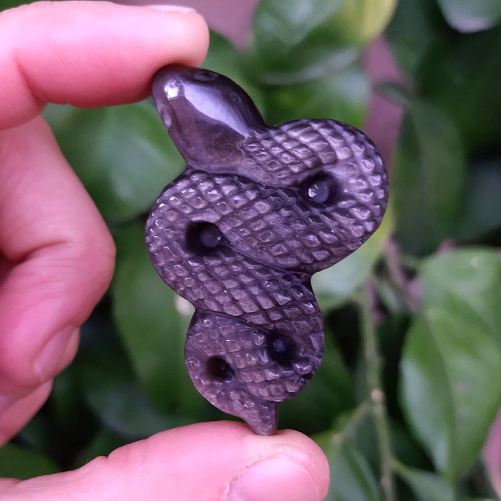 Small Sheen Obsidian Snake carving. 2.2 inches long.This is a one-of-a-kind item - you will receive the actual item in photo. Once sold, it is gone.