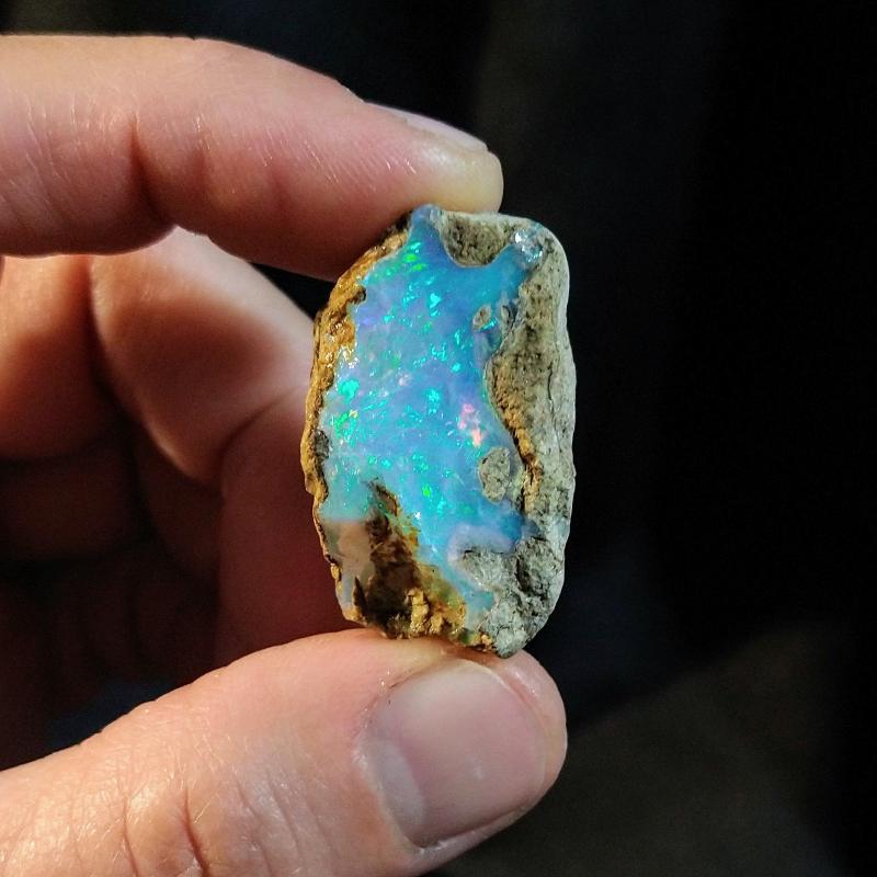 Blue Boulder Opal in matrix from Australia. 3.5 inches long, 0.465 pound in weight.This is a one-of-a-kind item - you will receive the actual item in photo. Once sold, it is gone.