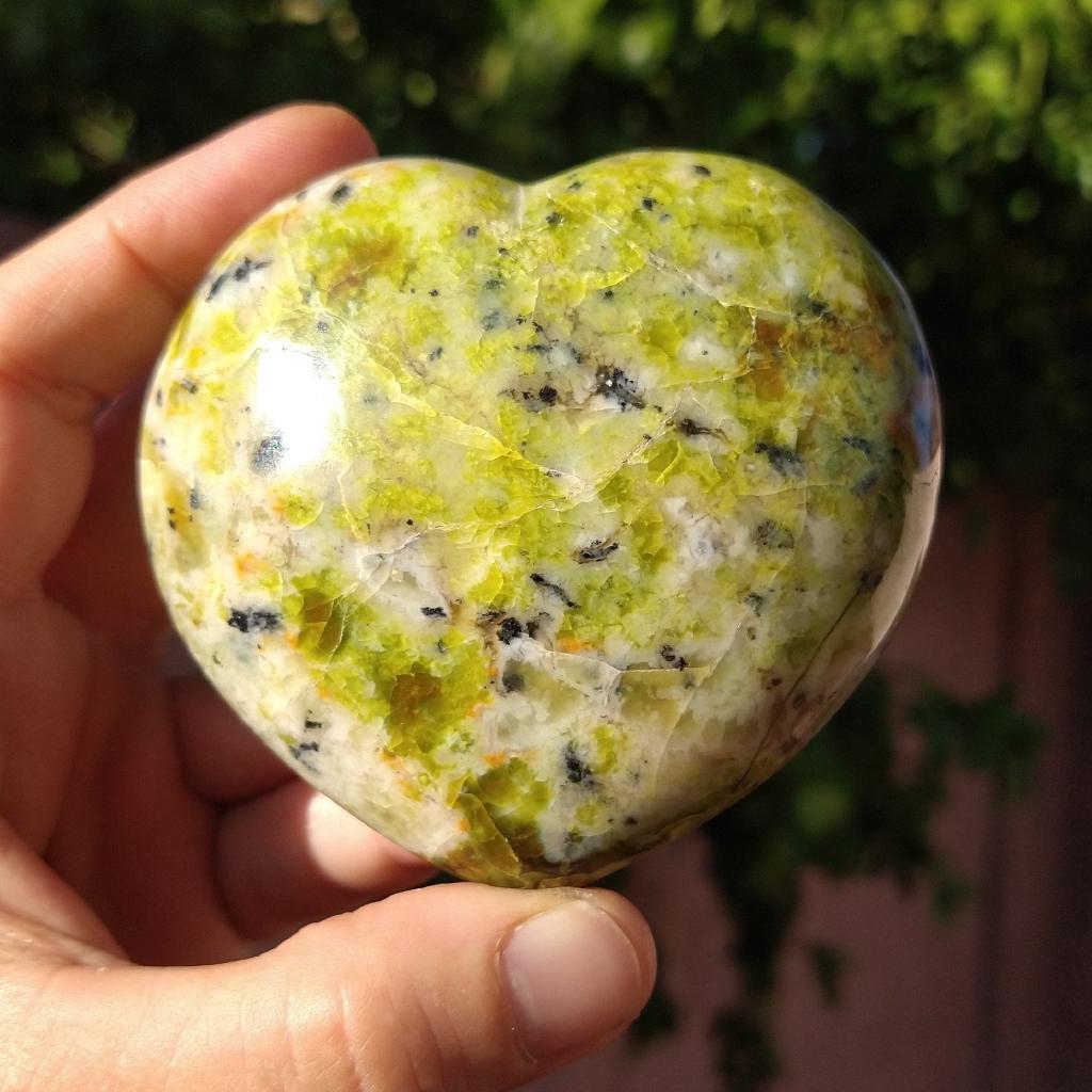 Green Opal Heart, from Madagascar. 3 inches wide, 0.49 pound in weight.This is a one-of-a kind item - you will receive the actual item in photo - once sold, it is gone.