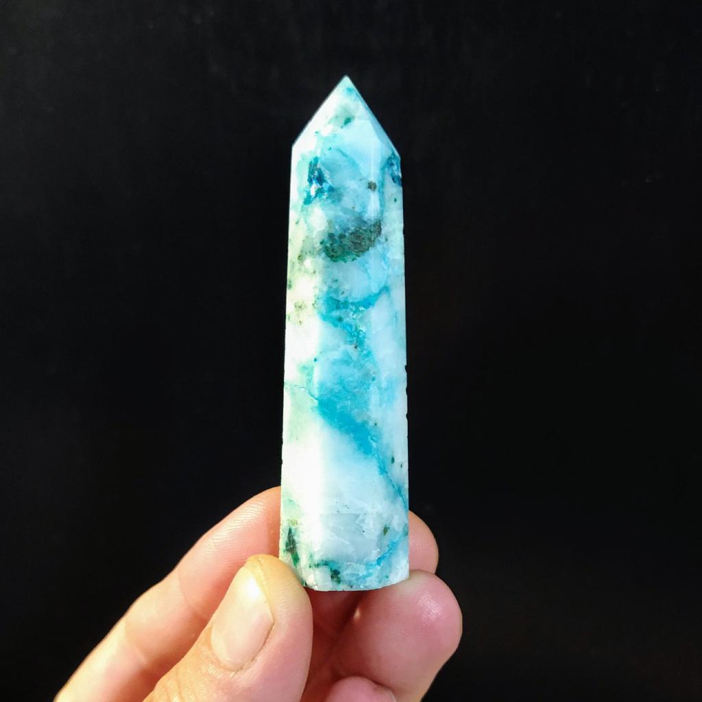 Small Phoenix Stone (Ajoite) Tower. 2.75 inches long.This is a one-of-a-kind item - you will receive the actual item in photo. Once sold, it is gone.