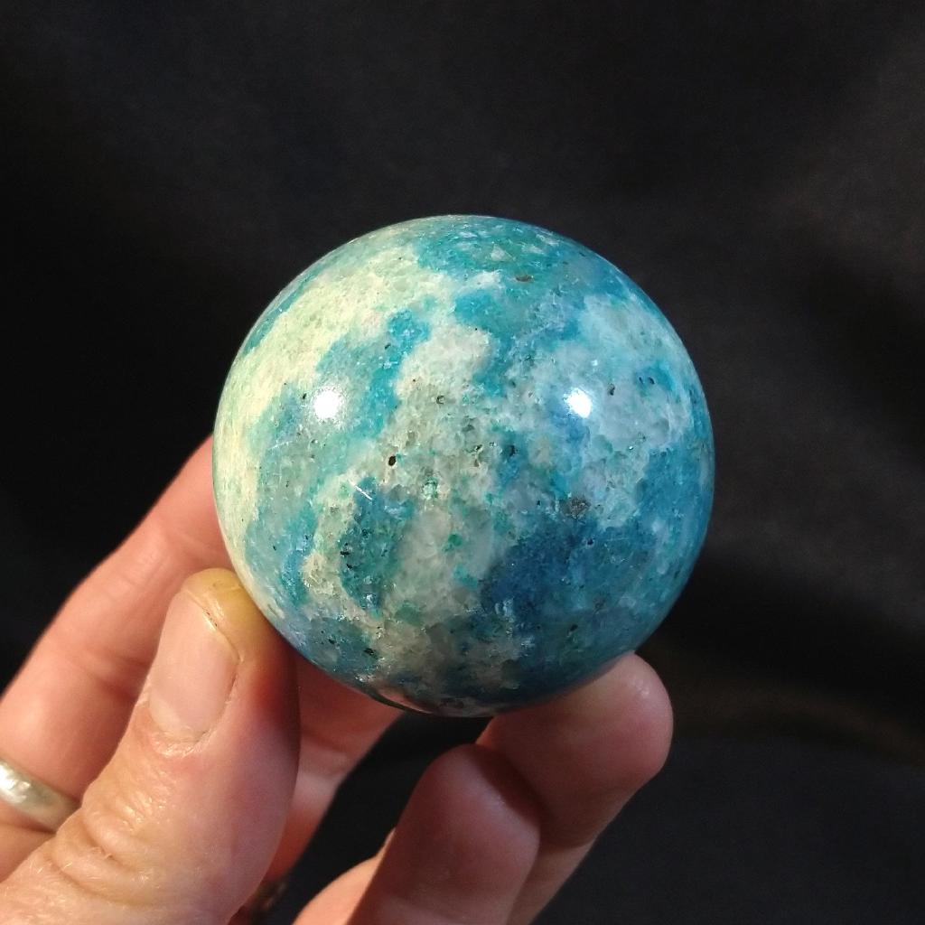 Phoenix Stone (Ajoite) Sphere. 1.85 inches in diameter, 0.30 pound in weight.This is a one-of-a-kind item - you will receive the actual item in photo. Once sold, it is gone.