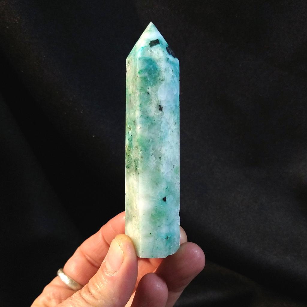 Phoenix Stone (Ajoite) Tower. 3.75 inches long.This is a one-of-a-kind item - you will receive the actual item in photo. Once sold, it is gone.