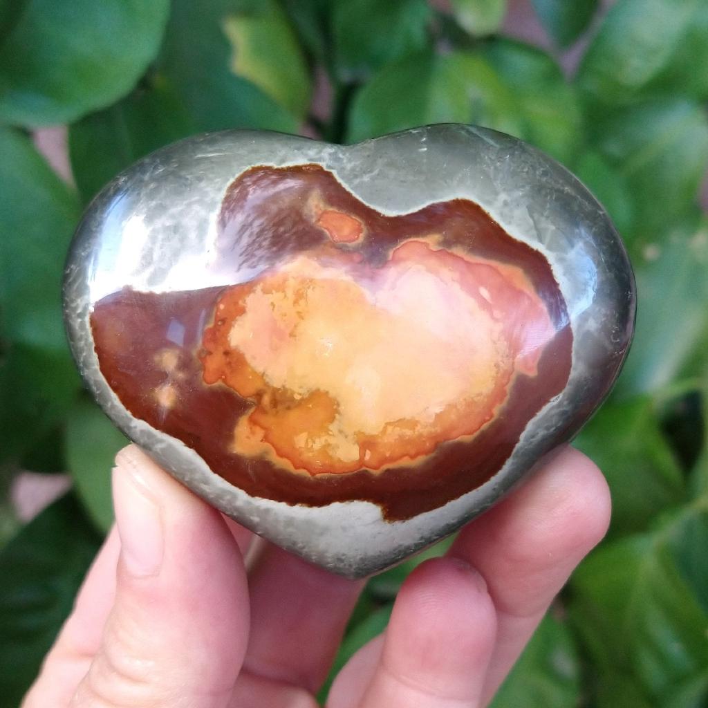 Polychrome Jasper Heart, from Madagascar. 2.75 inches wide, 0.29 pounds in weight.This is a one-of-a kind item - you will receive the actual item in photo - once sold, it is gone.