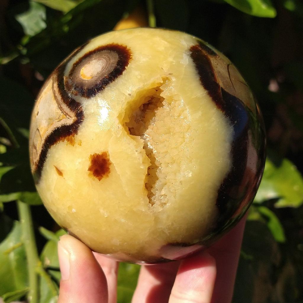 Septarian Sphere, from Madagascar. 3.3 inches in diameter, 1.73 pounds in weight. This is a one-of-a-kind item - you will receive the actual item in photo. Once sold, it is gone.