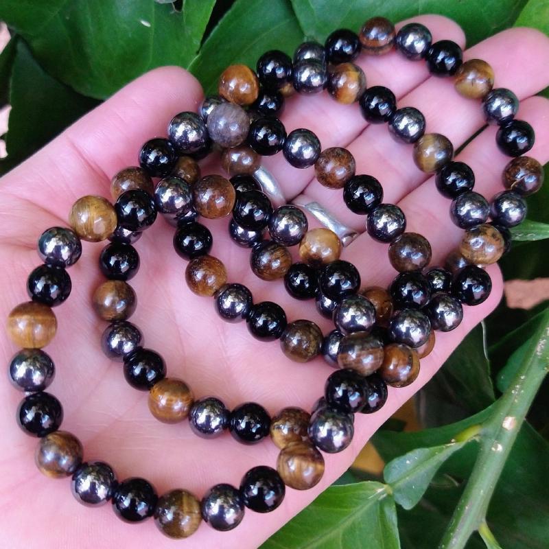 Tiger Eye / Onyx / Hematite Mix Bracelet, 8mm beads.Each one unique. Sold by the each.