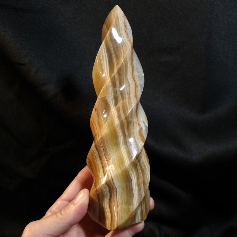 Cut & polished Onyx. 5.25 inches long. Includes display stand - see additional image. This is a one-of-a-kind item - you will receive the actual item in photo. Once sold, it is gone.