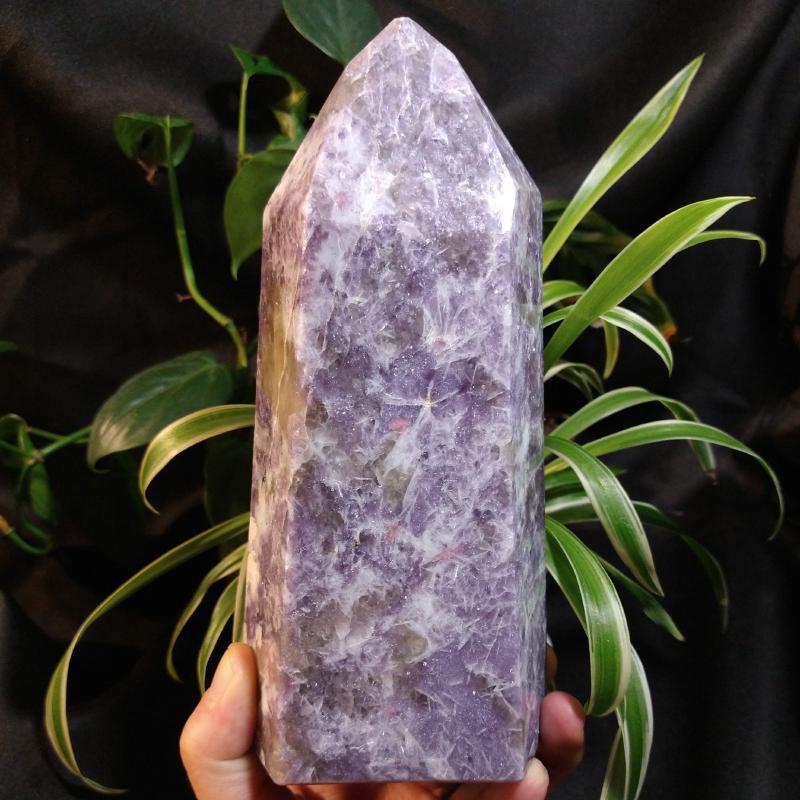 Large Lepidolite cut & polished. (Lepidolite with pink tourmaline, also known as “unicorn stone.”) 7.65 inches tall, 4.14 pounds in weight.