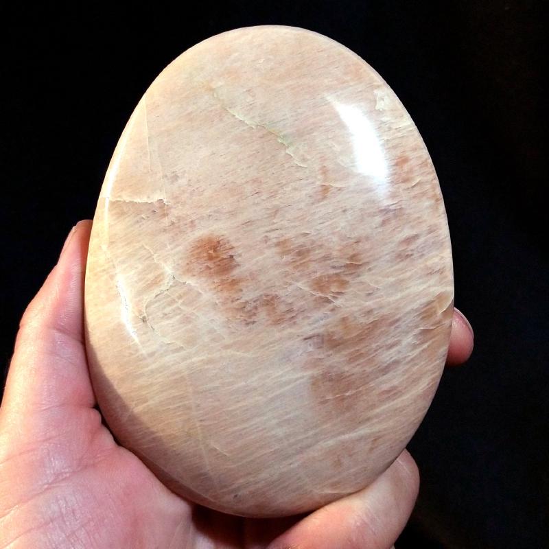 Large Peach Moonstone palm stone. 4.25 inches long, 0.60 pound in weight. This is a one-of-a-kind item - you will receive the actual item in photo. Once sold, it is gone.