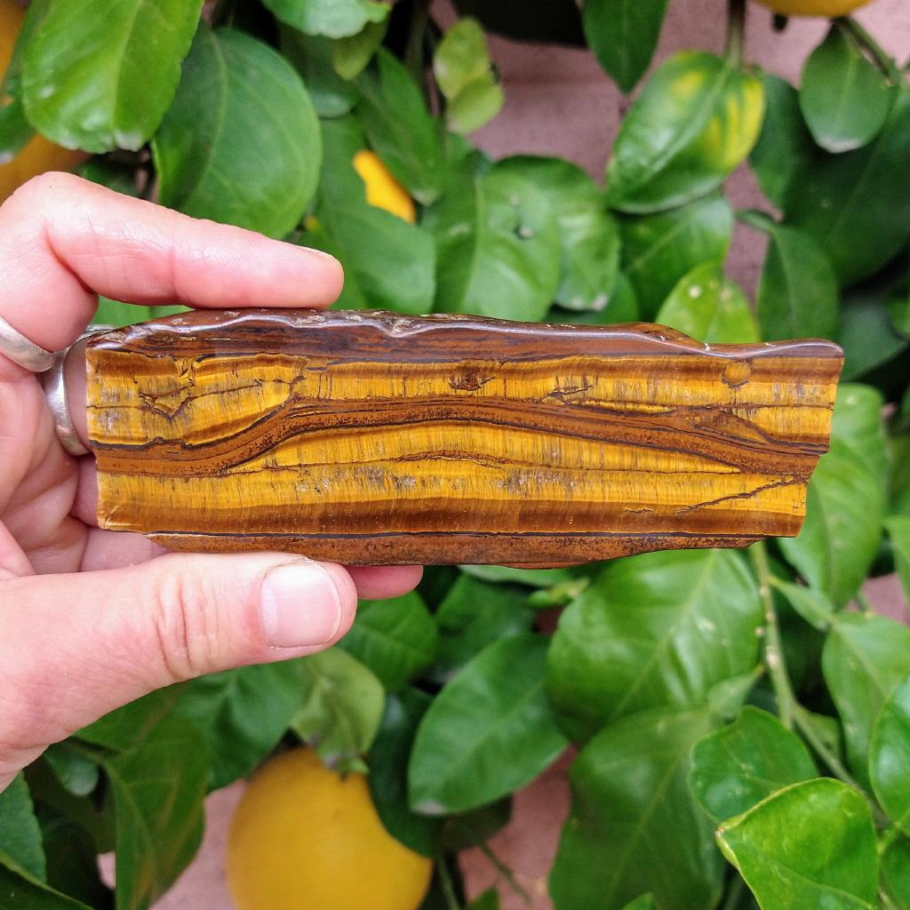 Tiger Eye slab, 4.65 inches long, 0.26 pound in weight. This is a one-of-a-kind item - you will receive the actual item in photo. Once sold, it is gone.