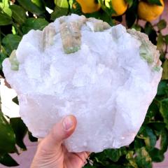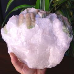 Tourmaline in White Quartz. Iron stand included. 8.25 inches wide, 9.06 pounds total weight including stand. This is a one-of-a-kind item - you will receive the actual item in photo. Once sold, it is gone.