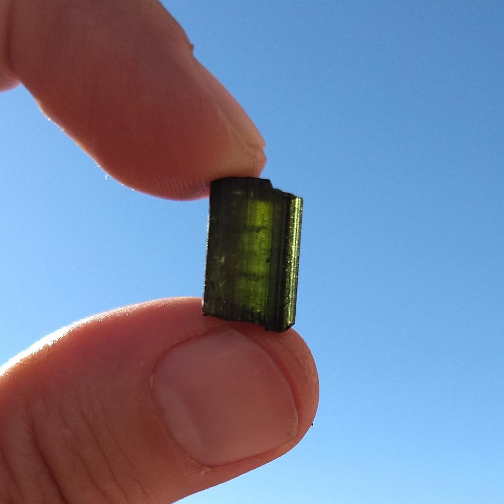 Small Green Tourmaline crystal from Brazil. 0.5 inch long, 1.85 grams.This is a one-of-a-kind item - you will receive the actual item in photo. Once sold, it is gone.