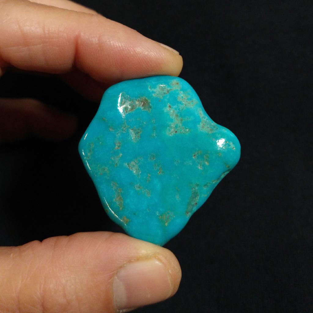 Polished Turquoise from Kingman, Arizona. 1.65 inches long, 13.22 grams in weight.This is a one-of-a-kind item - you will receive the actual item in photo. Once sold, it is gone.