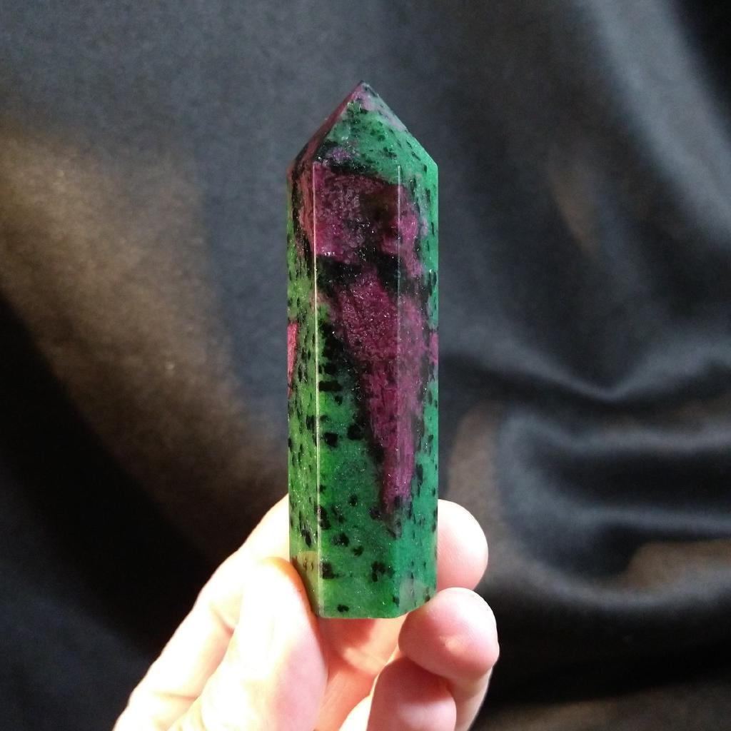 Ruby Zoisite tower. 3.25 inches long, 0.19 pound in weight.This is a one-of-a-kind item - you will receive the actual item in photo. Once sold, it is gone.