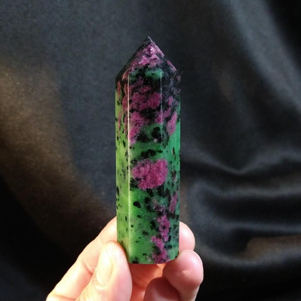 Ruby Zoisite tower. 3.25 inches long, 0.20 pound in weight.This is a one-of-a-kind item - you will receive the actual item in photo. Once sold, it is gone.